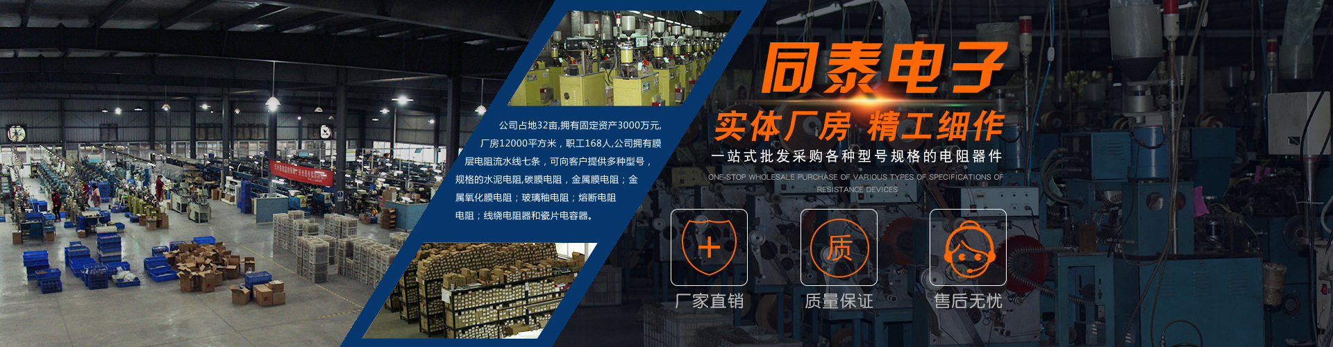 公司占地32畝,擁有固定資產3000萬元,廠房12000平方米,職工168人,公司擁有膜層電阻流水線七條,可向客戶提供多種型號,規格的水泥電阻,碳膜電阻,金屬膜電阻;金屬氧化膜電阻;玻璃釉電阻;熔斷電阻電阻;線繞電阻器和瓷片電容器。年產量20億只。公司先后從德國。臺灣等地引進設備和技術,不斷創新。開發市場所需要的產品,積極開拓國內外市場。